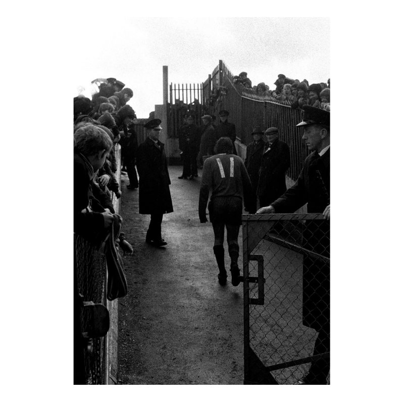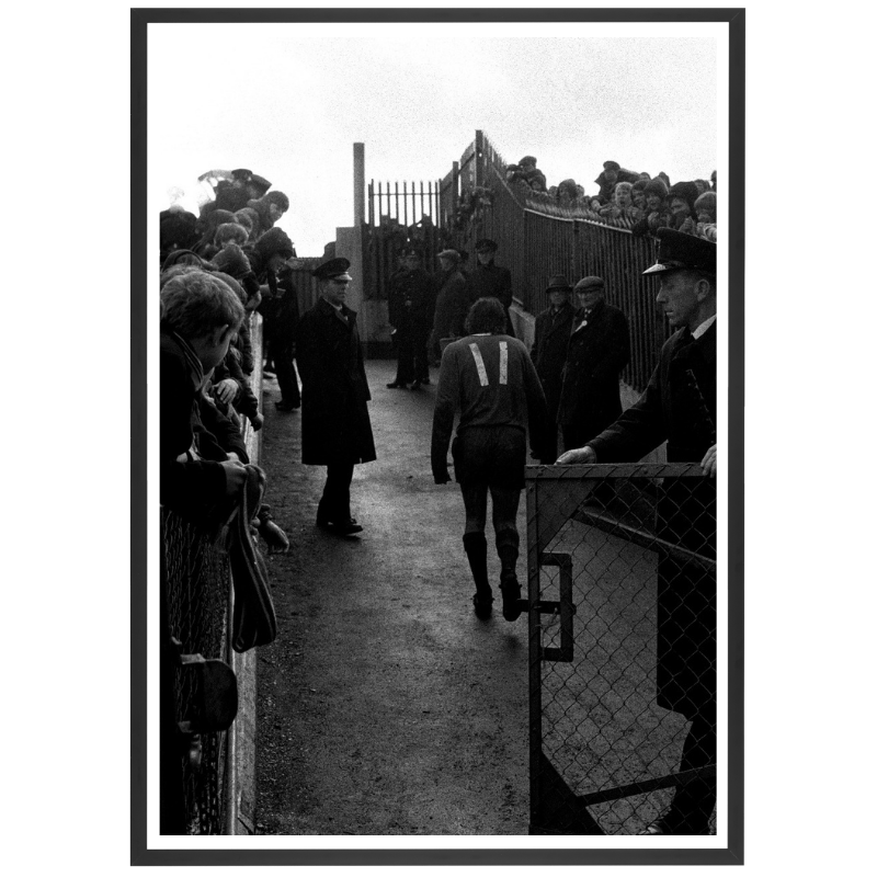Georges Best returns to the locker room after being sent off for throwing mud and spitting at referee Jim Finney