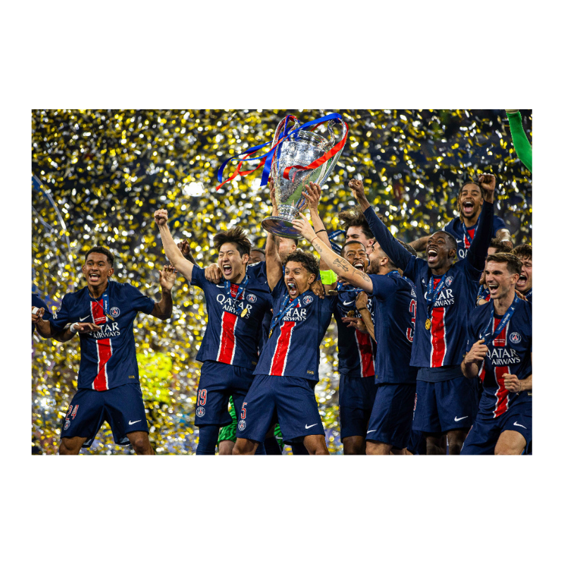 Paris lifts the Champions League trophy, Final 2025