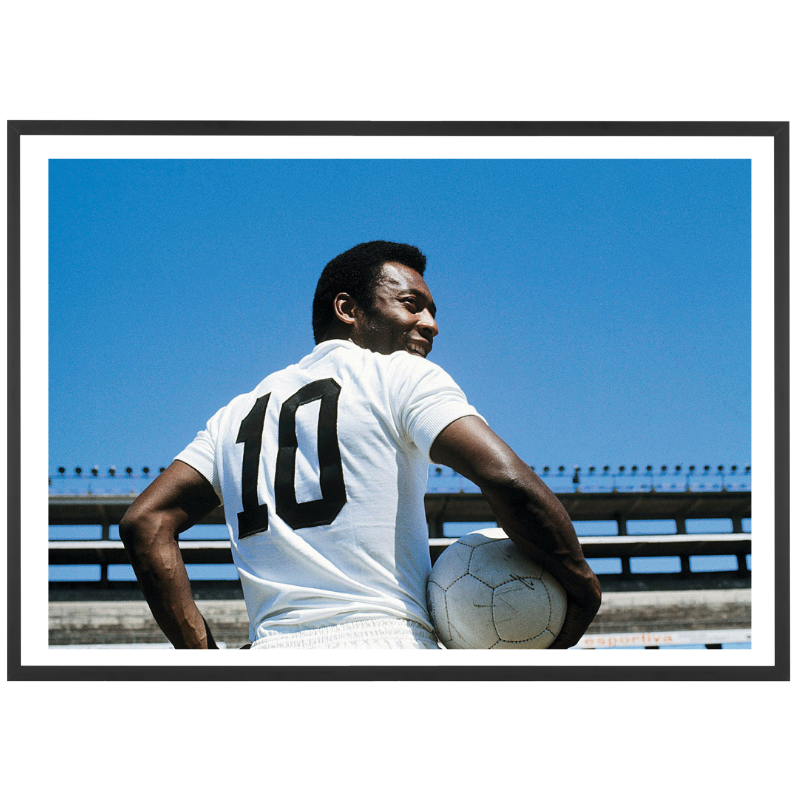 Portrait of King Pelé, posing from behind, with his number 10, in the FC Santos jersey