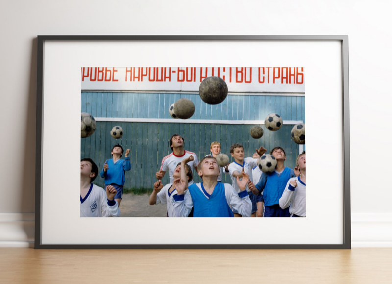 Une nuée de ballons suspendus dans les airs et une bande de gamins qui lèvent les yeux vers leur rêve. Dans une cour d’école d’Union soviétique, le football se vit déjà comme une promesse d’évasion.