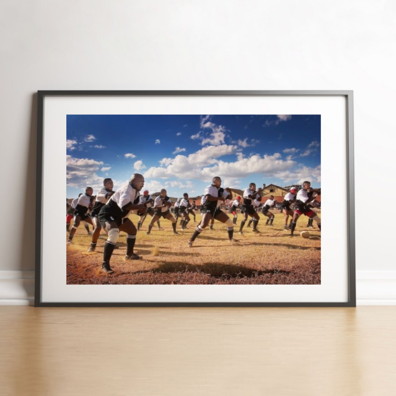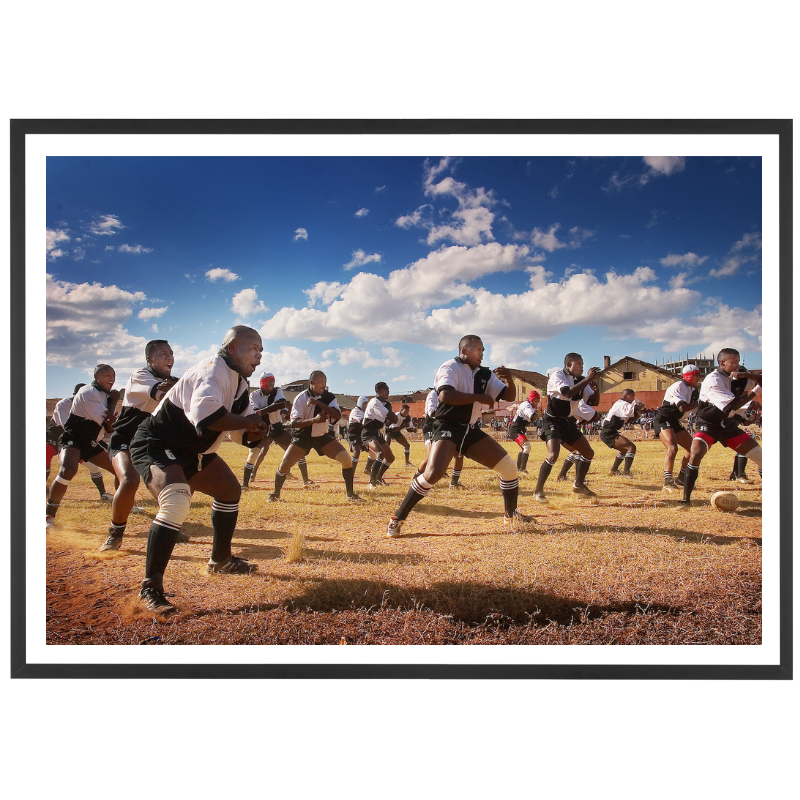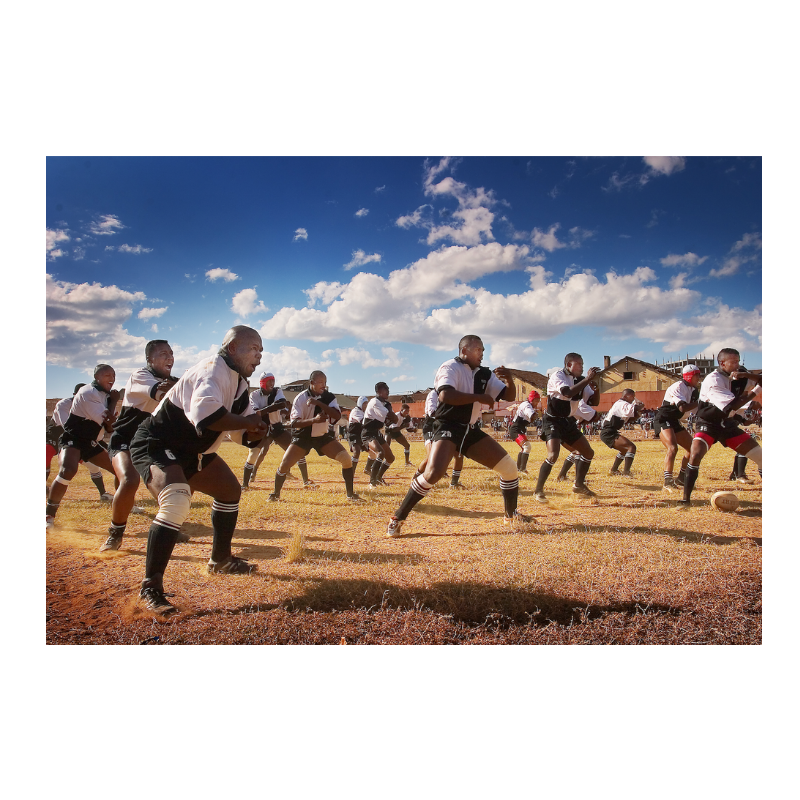 Dans cette image, le rugby dépasse le cadre du jeu pour devenir expression culturelle. Chaque geste, chaque regard raconte l’identité d’un collectif fier et engagé.