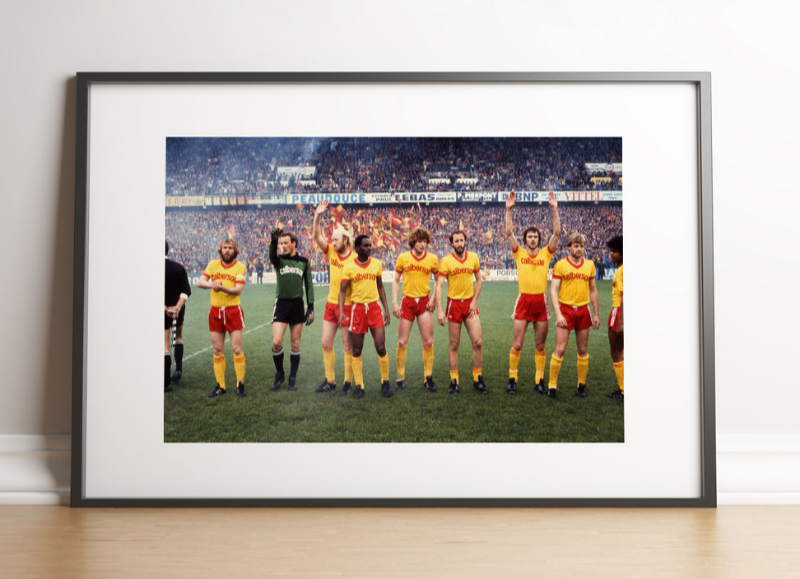 Alignés face au public, bras levés vers les tribunes, les joueurs du RC Lens saluent un stade Félix-Bollaert incandescent. Le 9 juin 1981, les Sang et Or de Daniel Leclercq entrent sur la pelouse pour la demi-finale retour de Coupe de France face à Bastia.