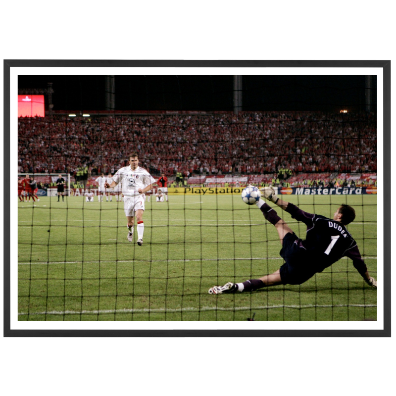Jerzy Dudek arrête du bout des doigts (pied et main) le penalty d'Andriy Shevchenko et donne la victoire aux siens dans la folle finale de C1 2005