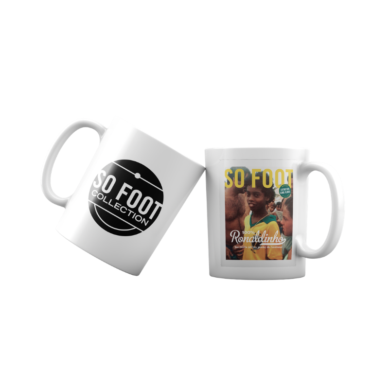 Célébrez le football comme un art de vivre avec ce mug inspiré de la couverture de So Foot #148, consacrée à Ronaldinho, incarnation ultime du jeu et du sourire.