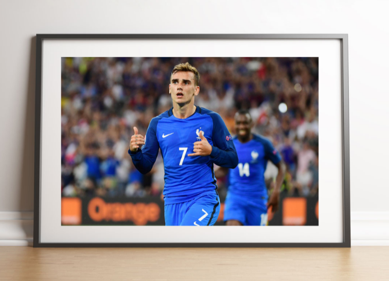 Il y a des soirs où tout semble écrit d’avance. Le 7 juillet 2016, au Stade Vélodrome de Marseille, Antoine Griezmann fait basculer la demi-finale de l’Euro 2016 entre la France et l’Allemagne. Après un premier but, l’attaquant de l’Atlético Madrid s’offre un doublé décisif et libère tout un pays. Dans la foulée, il enchaîne avec sa célébration devenue signature, mélange de décontraction et de confiance totale. Capturée au moment où l’émotion explose, cette image incarne l’apogée du Griezmann version 2016