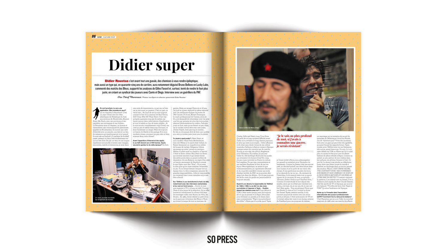 un clin d’œil à Didier Roustan, qui a terminé le jeu du foot depuis longtemps, mais est loin du game over. La preuve, il sort une appli. De foot, pas de rencontres, hein.