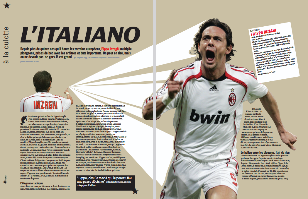 Un numéro culte et solaire de So Foot, spécial été (2007). Ambiance plage, maillots mouillés et vannes bien senties : le mag se met en mode vacances tout en gardant sa plume affûtée. Au programme : un cahier plage plein de jeux, tests et mots croisés débiles (mais drôles), des dossiers sur Louis-Dreyfus, un portrait de Nasri présenté comme “l’anti-Zidane”, un article sur Kaká en route vers le Ballon d’Or, et un papier légende sur l'équipe de Bastia 78, l’âme corse du foot français. Sans oublier les coups de gueule de Jean-Michel Larqué, les confessions gitanes du foot de rue et un trio mythique en guest : Pippo Inzaghi, Redondo et Dario Silva.
