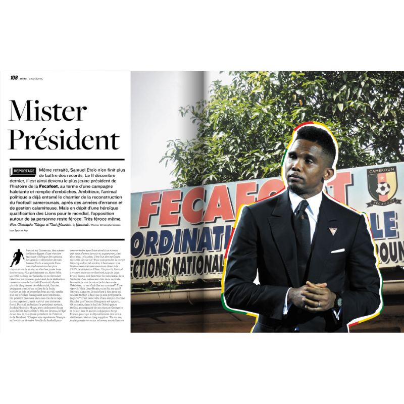 Suite au succès rencontré l'été dernier par le double numéro d'été hommage à Samuel Eto'o, nous avons décidé de vous proposer une édition collector du So Foot n°198 uniquement consacré au plus indomptable des Lions Indompatbles. Un numéro spécial de 116 pages consacré au parcours exceptionnel de l'attaquantcamerounais qui méritait son édition limitée tricolore. Limitée à 50 exemplaires seulement. Sans réimpression possible.