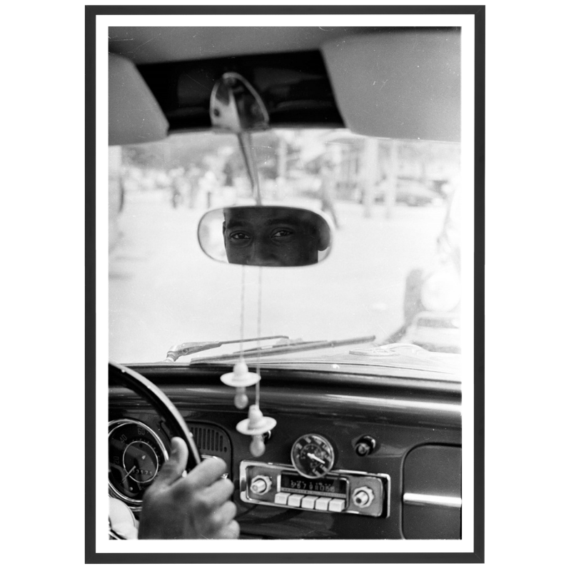 Pelé conduit sa première voiture, une Volkswagen Coccinelle. Dans le rétroviseur, des tétines pour se rappeler de ses enfants Kelly Cristina et Edinho.