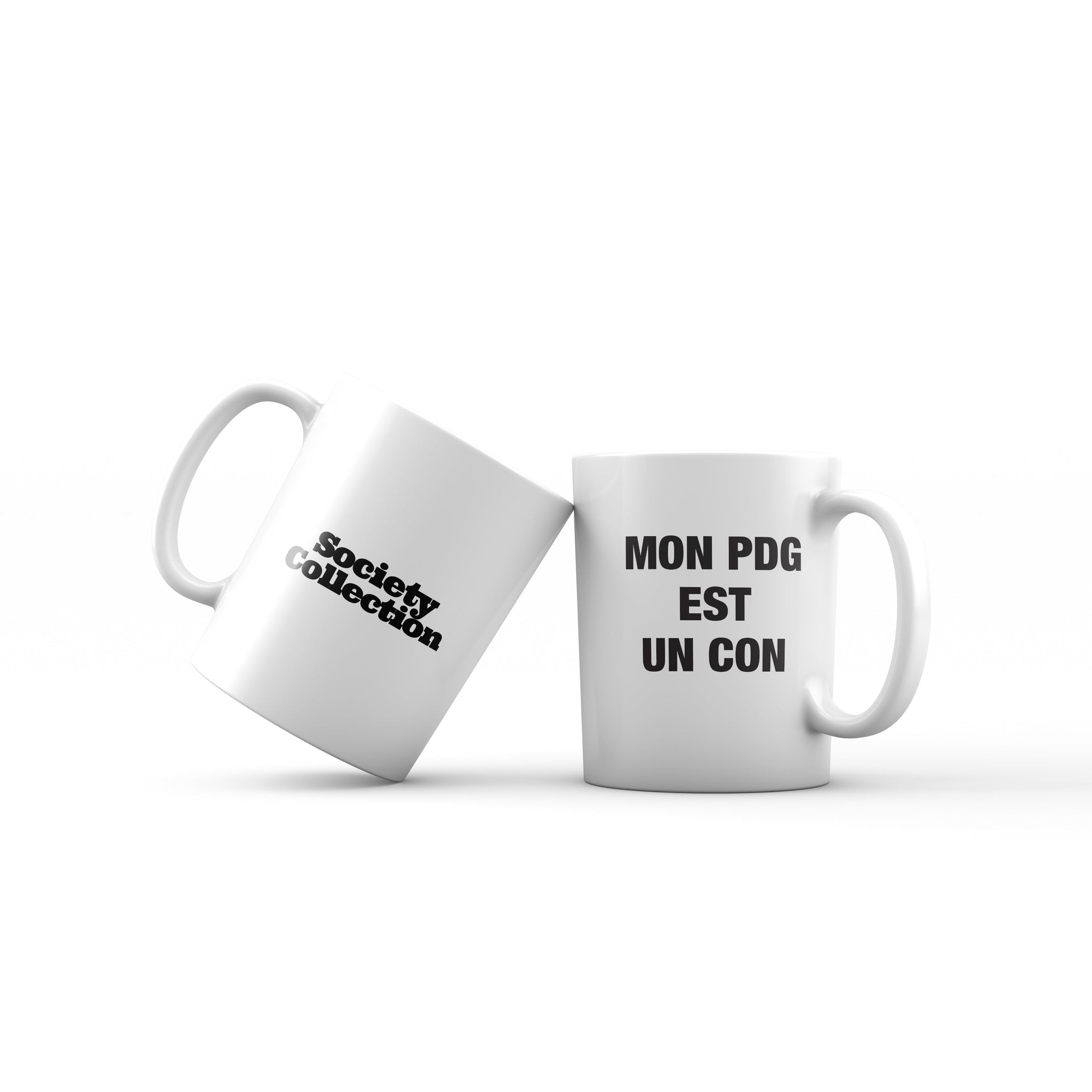 Mugs inspirés de la couverture du magazine Society, numéro 116, paru en octobre 2019 : « Mon N+1 est un con »