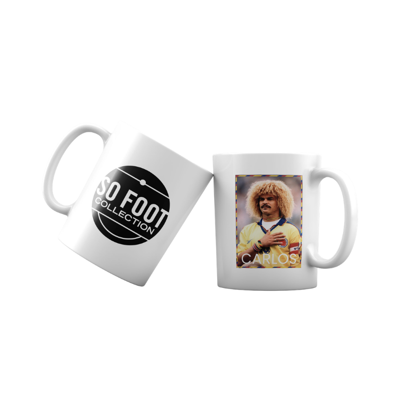 Ce mug est directement tiré du t-shirt "Carlos" Valderrama, reprenant la photo du meneur colombien pendant les hymnes avant le match amical Allemagne – Colombie (3-1), disputé à Francfort le 30 mai 1998, à quelques semaines de la Coupe du monde en France.