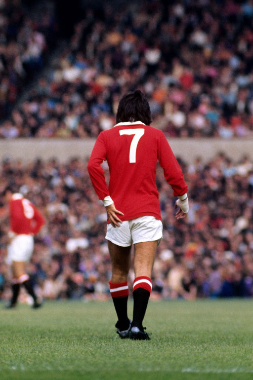 Un flocage. Un numéro. Une légende. Ce mug rend hommage à George Best, icône absolue de Manchester United, capturé de dos sous le mythique numéro 7 à Old Trafford.