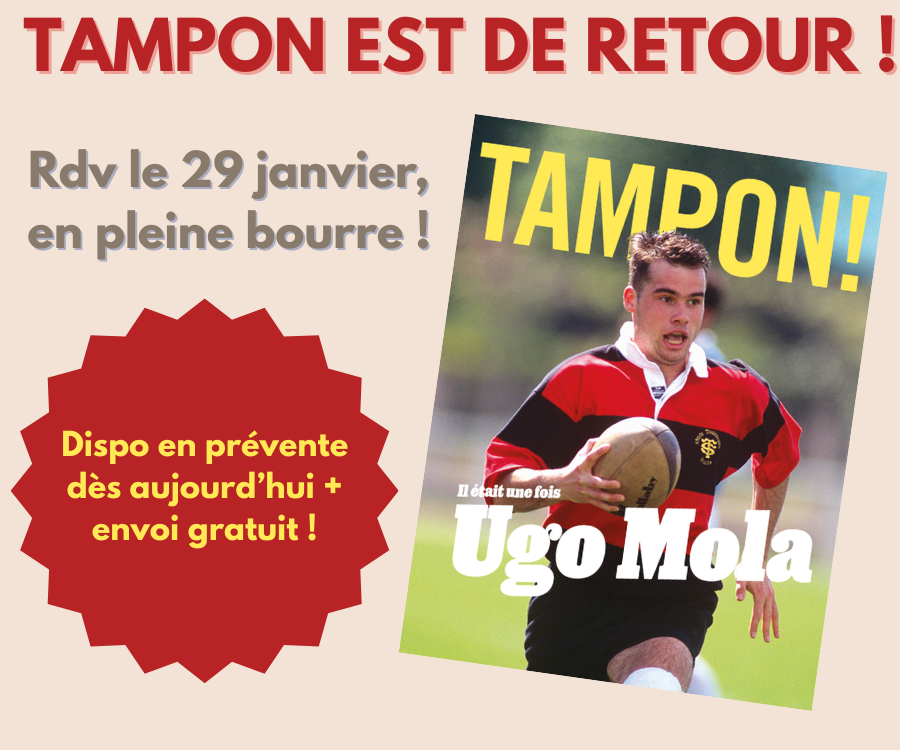 Reçoisgratuitement dans ta boîte aux lettres (le jour de sa sortie - le 29 janvier - ou le lendemain selon votre postier) ton nouveau magazine rugbystique annuel préféré (au même prix que si tu allais au kiosque) ! En l'occurrence, on teste la formule avec le nouveau numéro de notre annuel de rugby, le magazine Tampon !