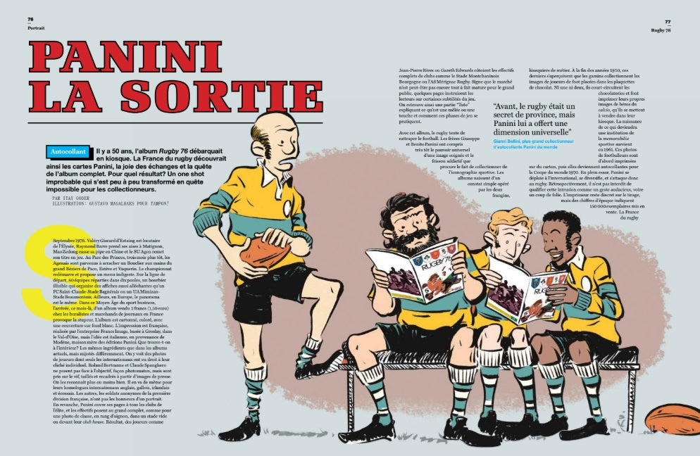 Au menu également : rencontre avec Didier Sanchez, le roi de la mêlée ; une journée d'interview avec Pierre Berbizier ; l'histoire de l'unique collection de vignettes Panini rugby en 1976 ; un reportage à Newcastle, dans le futur du rugby anglais....
