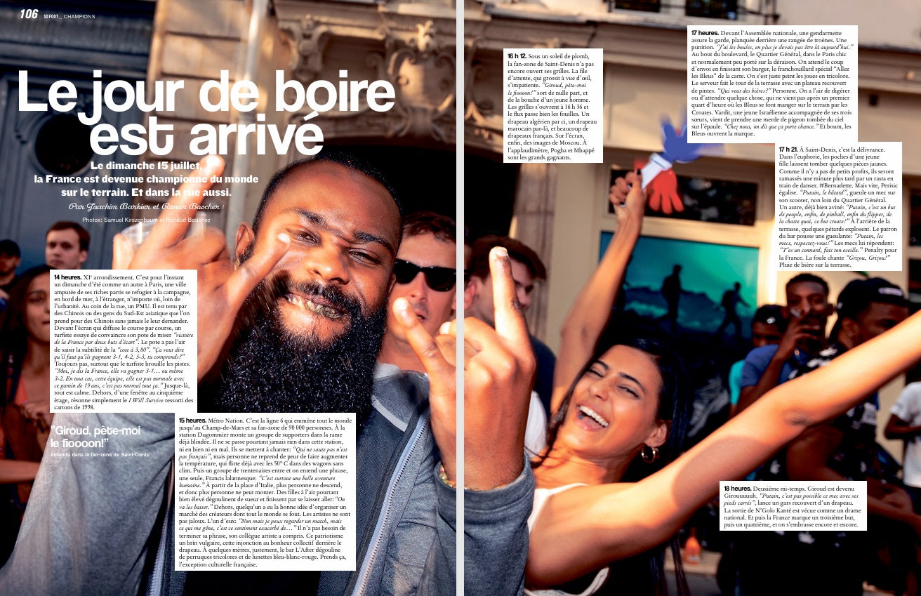 • HEURE PAR HEURE Le jour de boire est arrivé. Les journalistes de SO FOOT ont vécu la finale à Paris, Bondy, Saint-Denis. Ils racontent la finale et la liesse, heure par heure. Reportage au bout de la nuit.