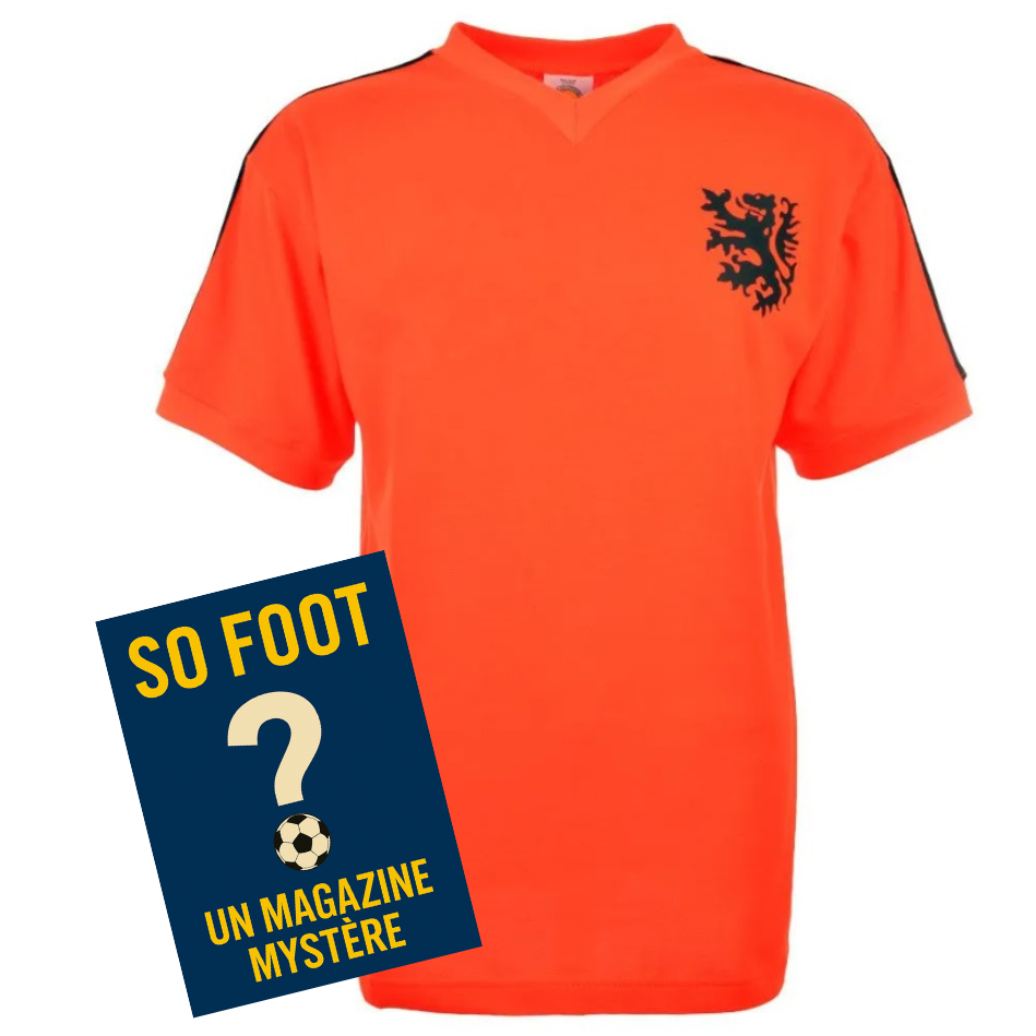 A l’arrivée, la Hollande perd contre l’Allemagne en finale (2-1) mais laisse une trace bien plus indélébile dans le temps. En témoigne la couverture du beau livre So foot hommage à la décennie 1970 qui accompagne ce maillot. Sous-titré "Football total, napalm et poteaux carrés" et préfacé par Dominique Rocheteau, il vous fera revivre en 196 pages chevelues la Cruyff mania, l’épopée de Bastia, la grande époque du Bayern, et tout ce qui a rendu inoubliable cette époque bénie du football.