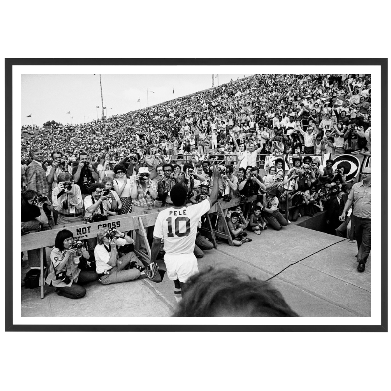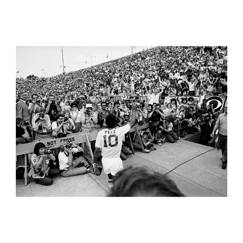 Pelé salue ses fans venus en nombre (22 000 personnes) alors qu’il s’apprête à faire ses débuts en championnat américain avec les New York Cosmos