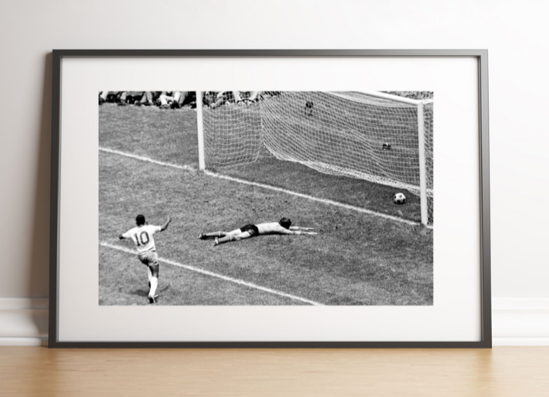 Bras écartés, lancé dans une course joyeuse, Pelé célèbre comme un enfant. Le 21 juin 1970, au stade Azteca, le Brésil affronte l’Italie en finale de la Coupe du Monde 1970. À la 66ᵉ minute, Gerson inscrit le troisième but brésilien, scellant un peu plus le destin du match.