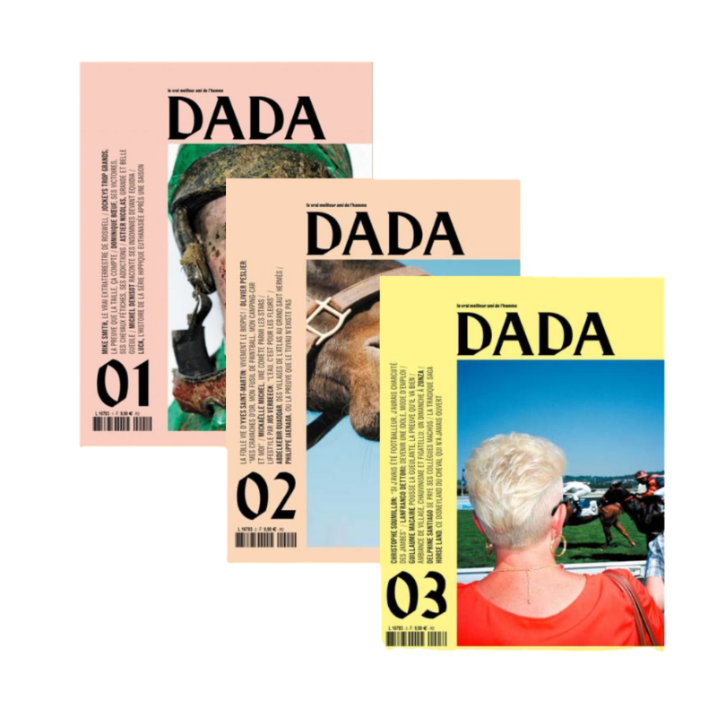 Cette collection réunit les trois premiers numéros du magazine Dada, trimestriel singulier consacré à l’hippisme racontant l’univers humain qui gravite autour des courses. Une plongée complète dans un milieu riche en histoires, en tensions, en passions et en trajectoires hors normes.