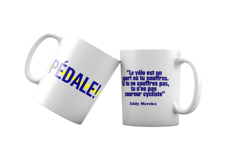 Ce mug rend hommage à Eddy Merckx, monument du cyclisme et incarnation ultime de l’effort à l’état pur. Sa phrase claque comme une vérité brute, sans filtre, presque cruelle : « Le vélo est un sport où tu souffres. Si tu ne souffres pas, tu n'es pas coureur cycliste ».
