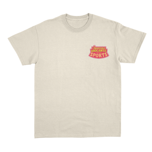 Maglietta bianca vintage con la scritta "Incredible Flea Market Sports 2.0"