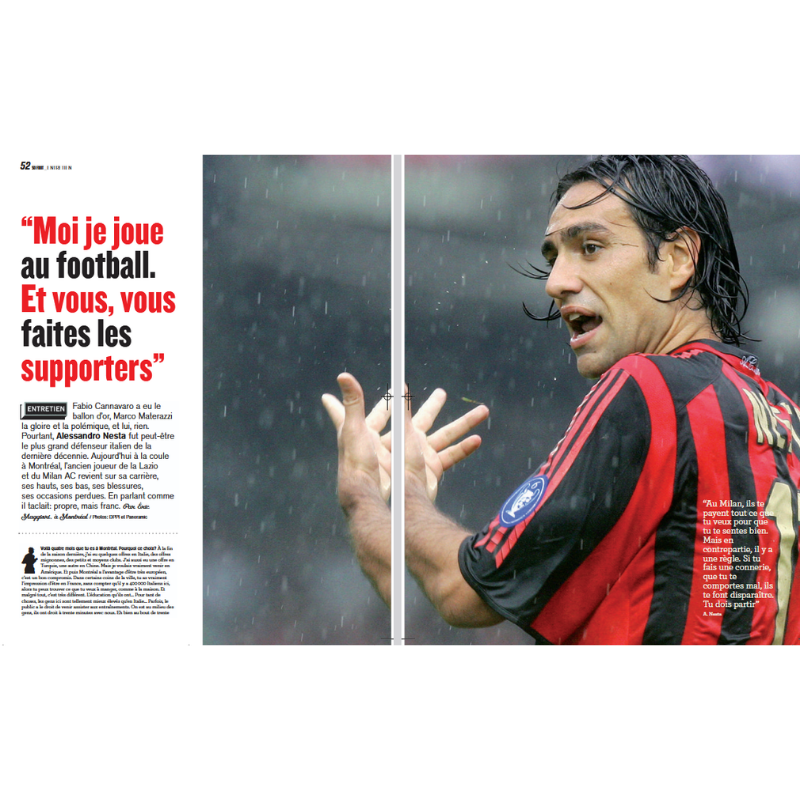 Una questione piena di dubbi, pioggia e verità, come Cesc Fàbregas, allora in cerca di libertà in un Barça fin troppo oliato. Foot lascia quindi la parola a un giocatore diviso tra la voglia di creare e la disciplina di una squadra leggendaria. Attraverso questa intervista potente e sincera, la rivista offre uno sguardo sull'altro lato del tiki-taka, tra frustrazione e passione per il gioco. Ma questo numero non si limita alla Catalogna: racconta tre storie folli: Joseph-Antoine Bell, divenuto re nel suo villaggio camerunense, Kakha Kaladze, ex difensore del Milan e vice primo ministro georgiano, e un compagno di giochi diventato presidente del club. E come sempre, So Foot si muove tra dramma, umorismo e umanità, con un cast di prim'ordine: Nesta, Scifo, Messi, Del Piero, Wilmots e Obraniak.