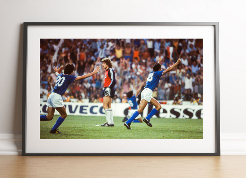 Dans cet instant capturé en pleine course, tout est déjà joué. Paolo Rossi, héros du tournoi, vient de marquer l’histoire en portant la Squadra Azzurra vers son troisième titre mondial.