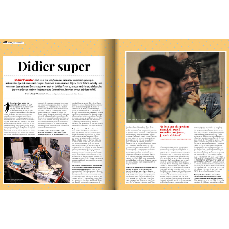 • Un omaggio a Didier Roustan , che ha terminato la sua partita di calcio molto tempo fa, ma è ben lungi dall'essere finita. La prova? Sta lanciando un'app. Un'app di calcio, non un'app per le partite, intendiamoci.